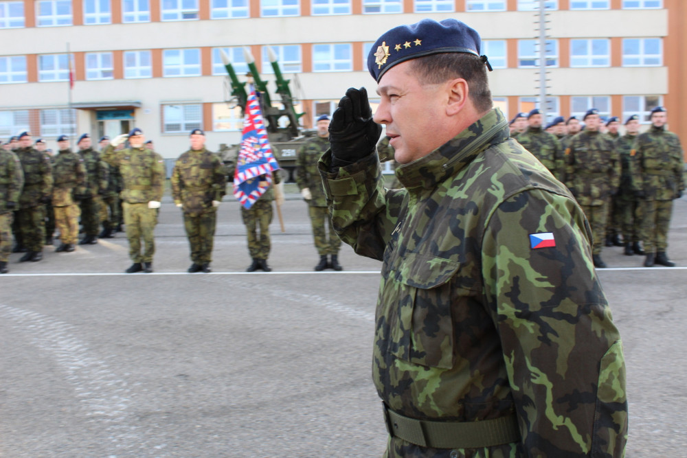 Ve strakonických kasárnách proběhl slavnostní nástup. Na snímku velitel útvaru plukovník Ján Sedliačik během přehlídky nastoupených jednotek.