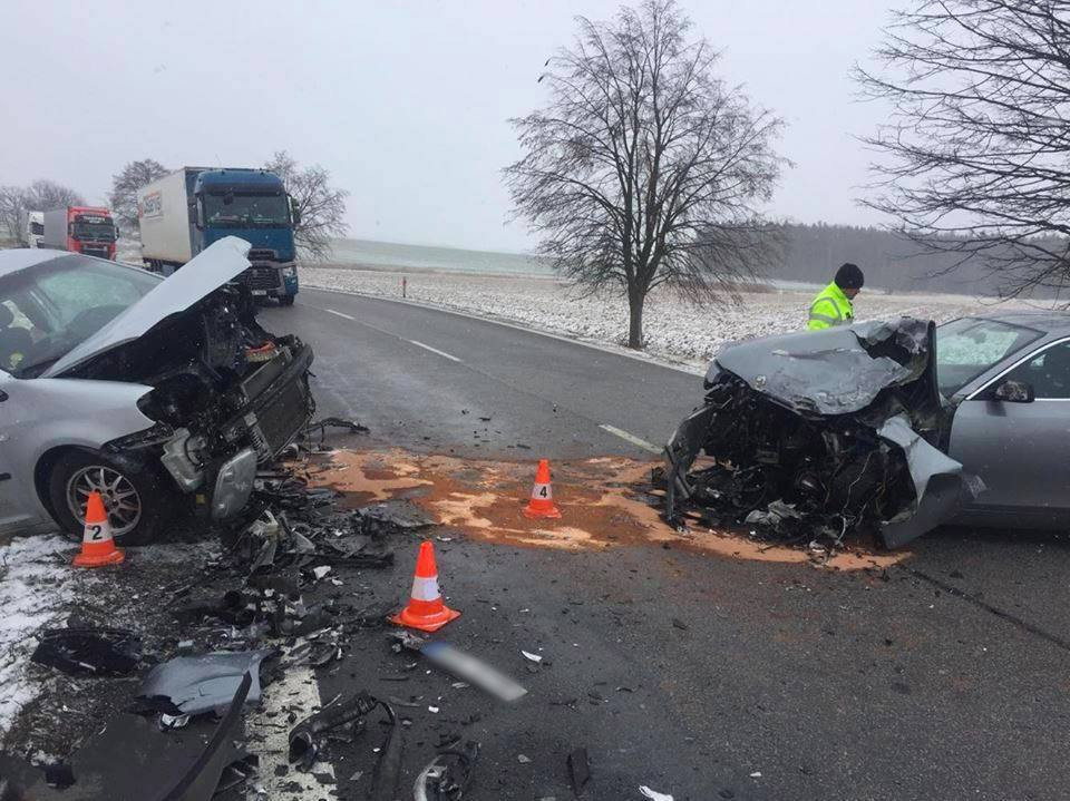 U Lišova se srazila dvě auta. Silnice na Štěpánovice je uzavřená
