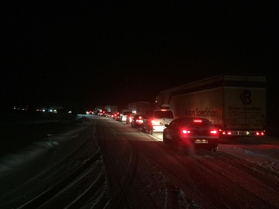 VIDEO: Silnice do Rakouska jsou téměř nesjízdné. U Dolního Dvořiště se kvůli nehodě tvoří kolony