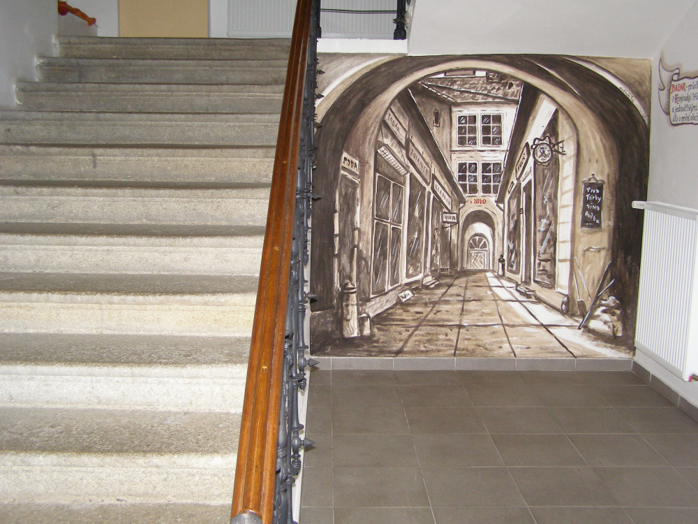 Průchodní dům, malba.