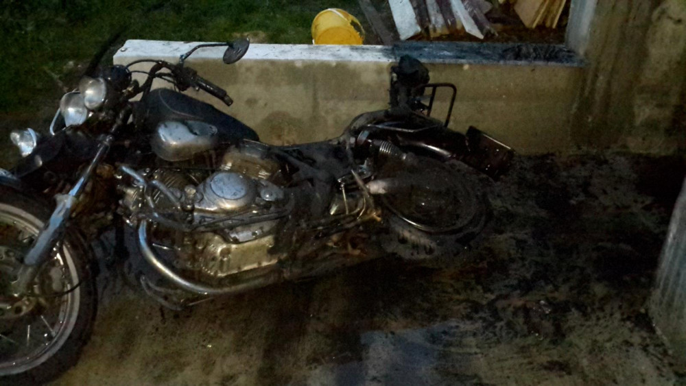 Od hořící motorky chytla v Rudolfově i stodola. Škoda je sto padesát tisíc korun