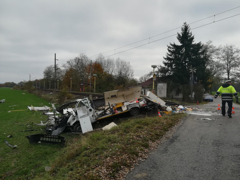 Dodávka se na Strakonicku srazila s rychlíkem, řidič auta je těžce zraněn