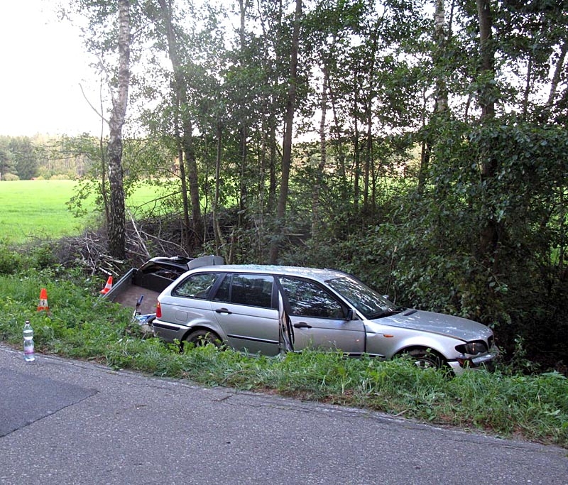 Havarované BMW 320D s přívěsem nedaleko Ledenic