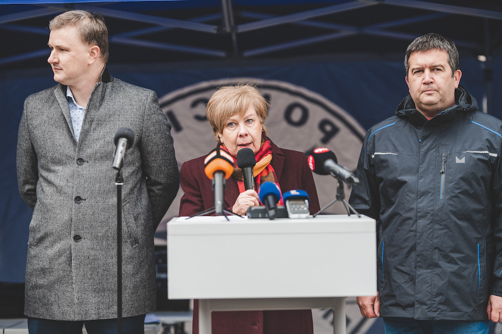 Ředitel budějcké nemocnice Michal Šnorek, hejtmanka Jihočeského kraje Ivana Stráská a ministr vnitra Jan Hamáček.