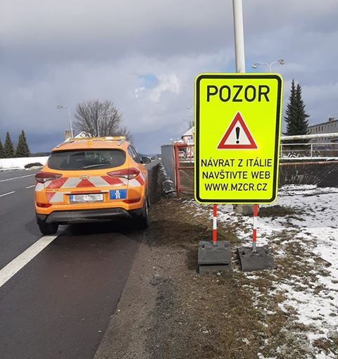 Informační tabule na hraničních přechodech odkazují lidi jedoucí z Itálie na web ministerstva zdravotnictví