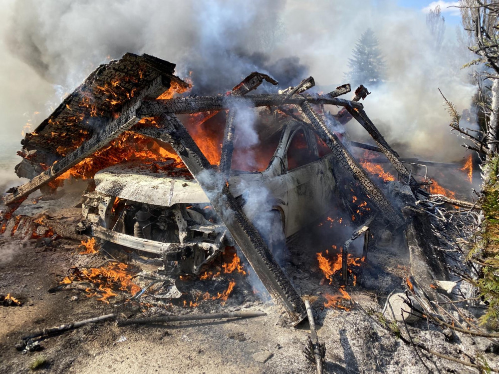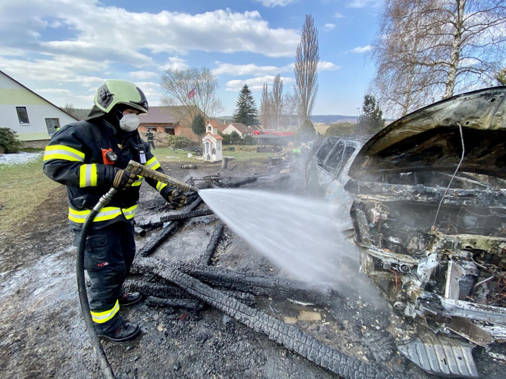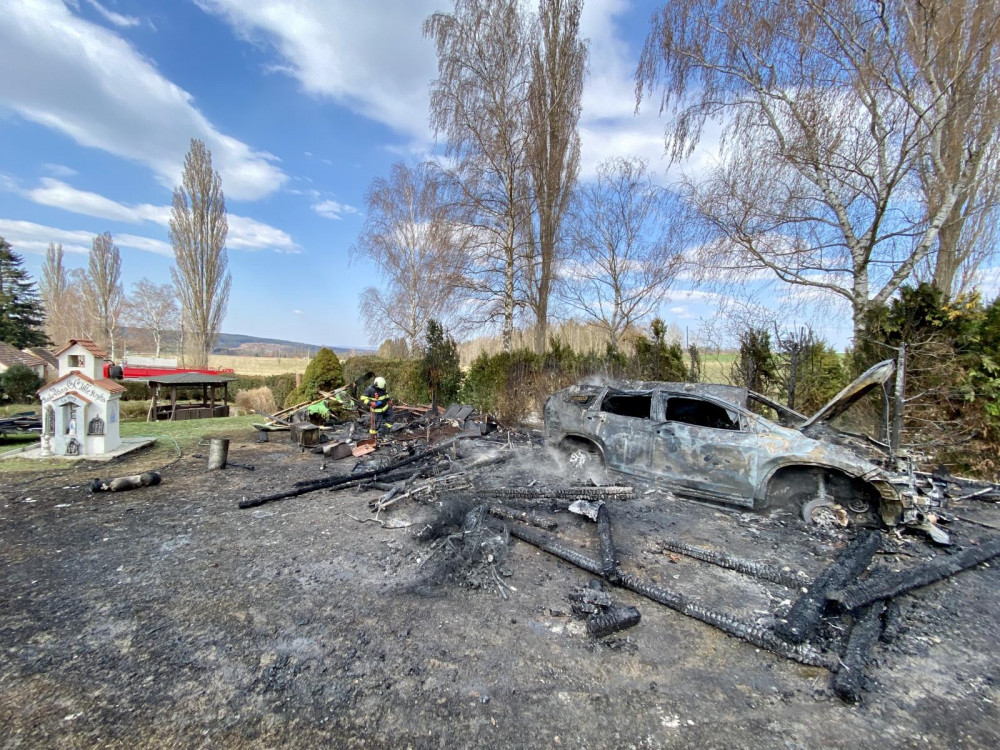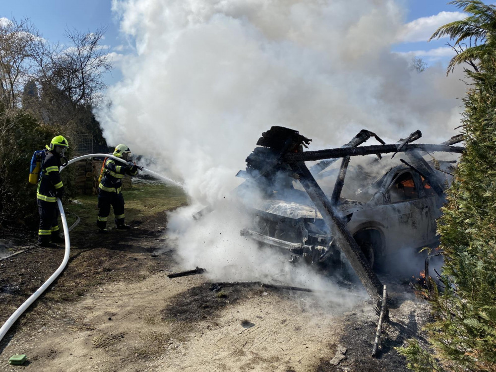 Při požáru auta a přístřešku vznikla škoda za více než milion korun