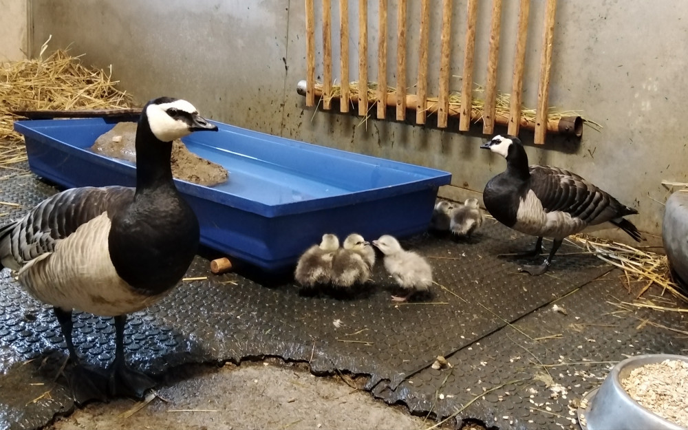 Pár bernešky bělolící vyseděl v ZOO Tábor šest nových přírůstků