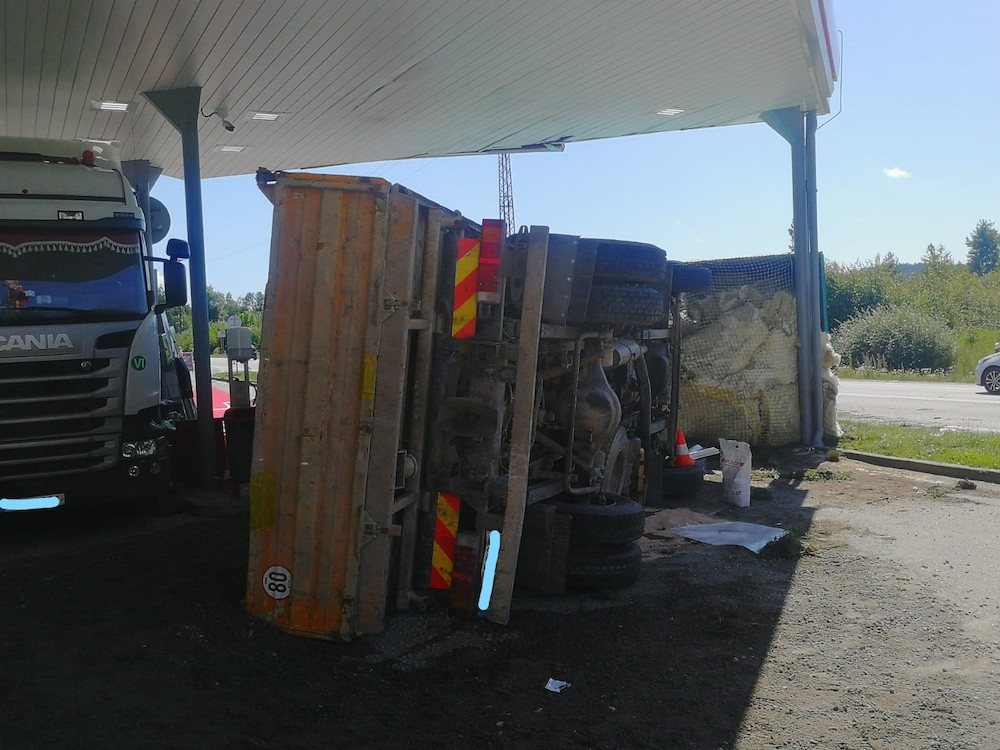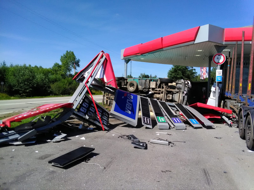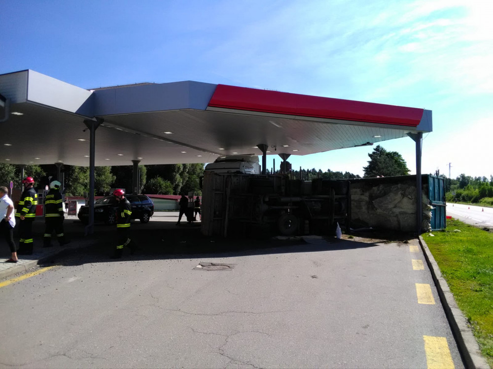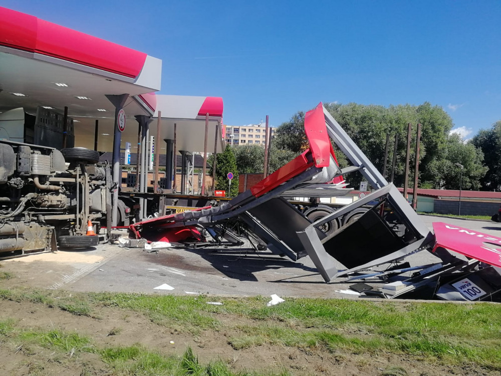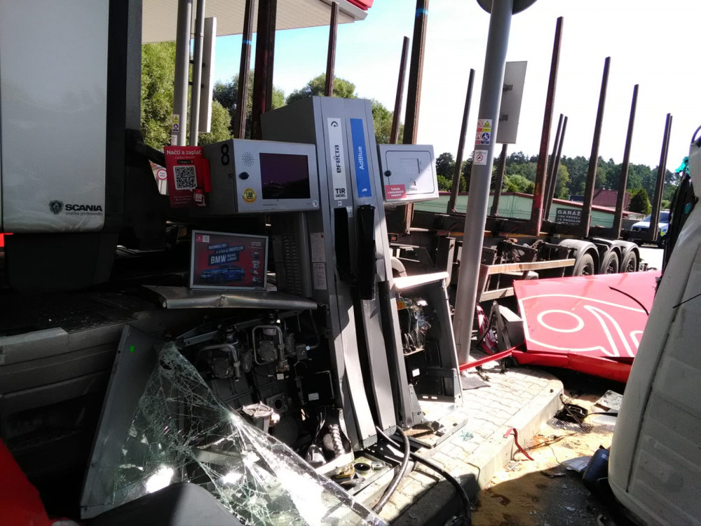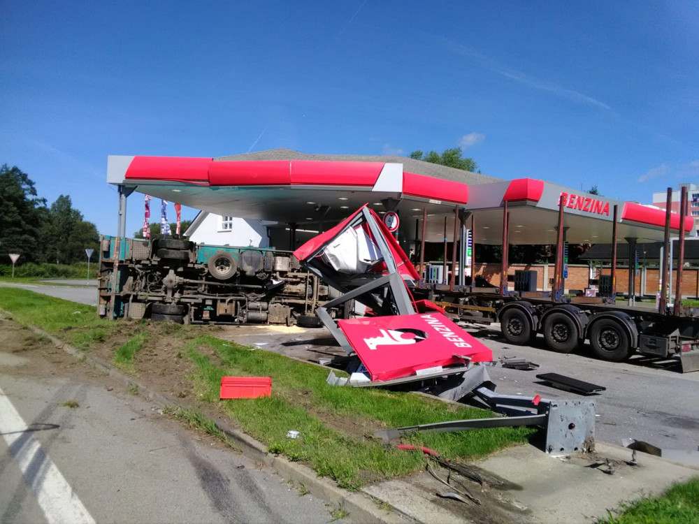 VIDEO: Hrozivě vypadající nehoda náklaďáků na Jindřichohradecku. Auta zbořila benzinku
