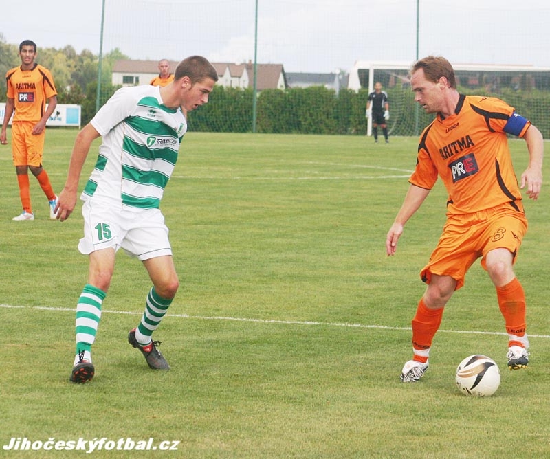 Kapitán Aritmy Lukáš Hrabák (vlevo) zrovna vyrovnal na 1:1