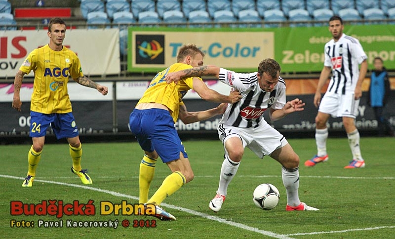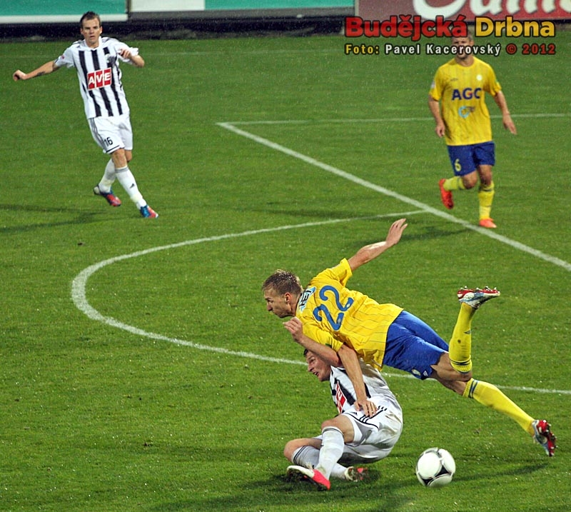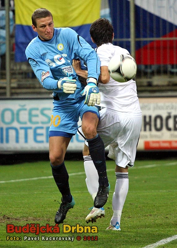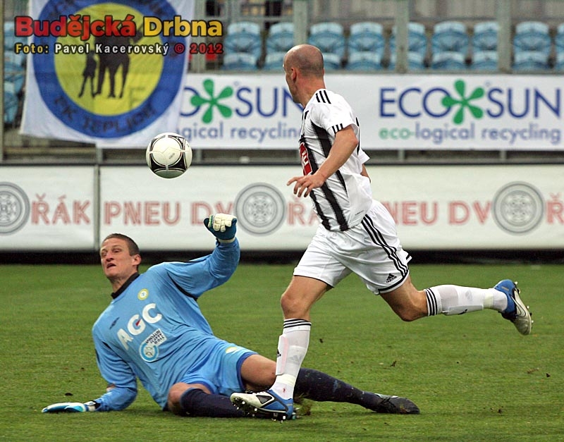 V tento moment byl u balonu dřív teplický brankář Tomáš Grigar, domácí Petr Javorek zakončit nestačil