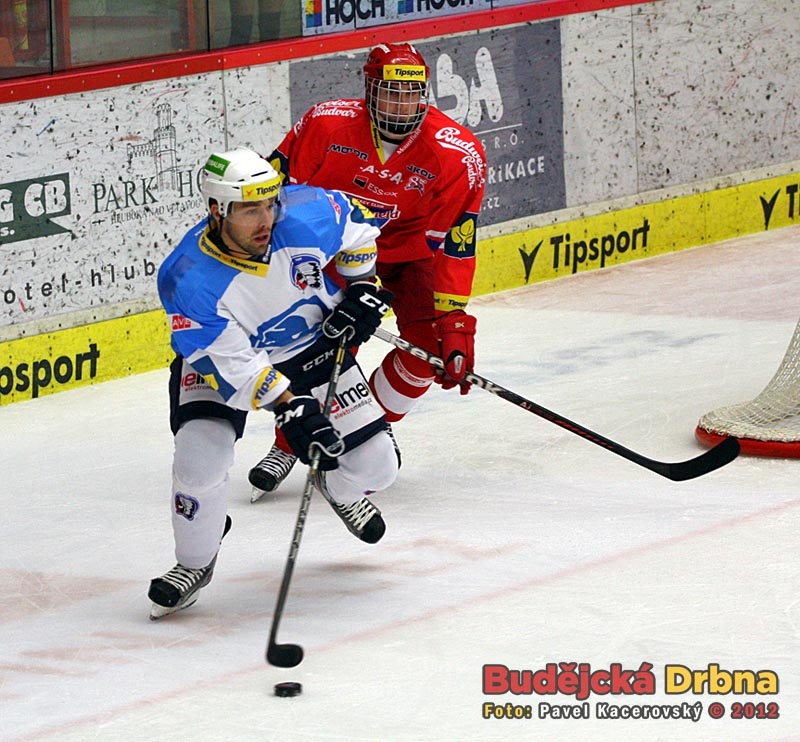 Bývalý budějcký útočník Milan Gulaš před Tomášem Knotkem