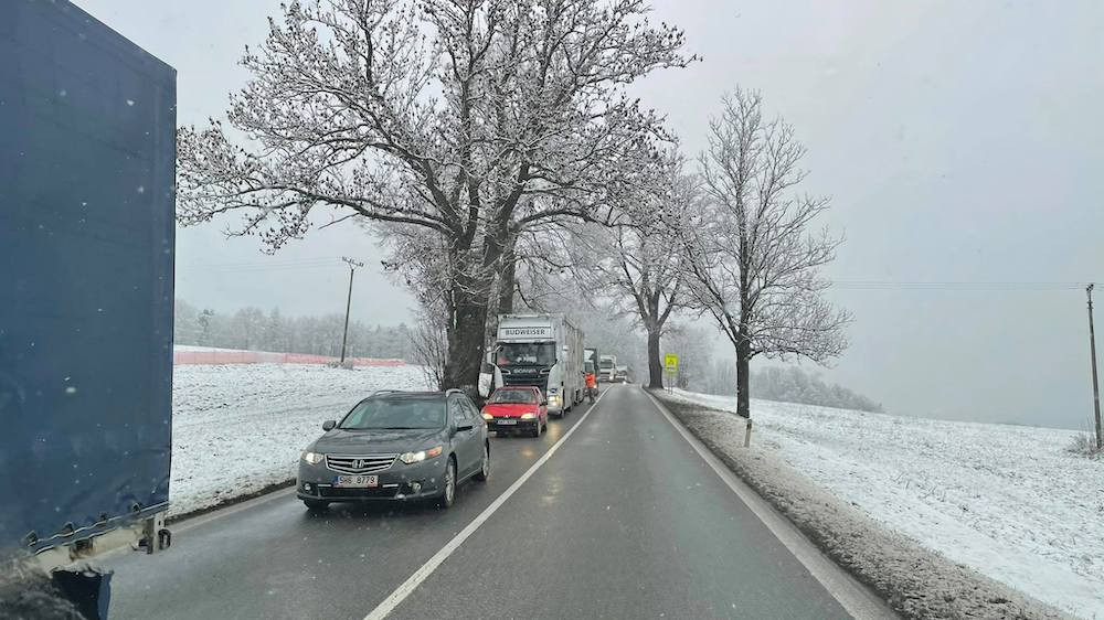 Nehoda osobního auta a náklaďáku uzavřela hlavní tah k hranicím. Na místě se tvoří kolony