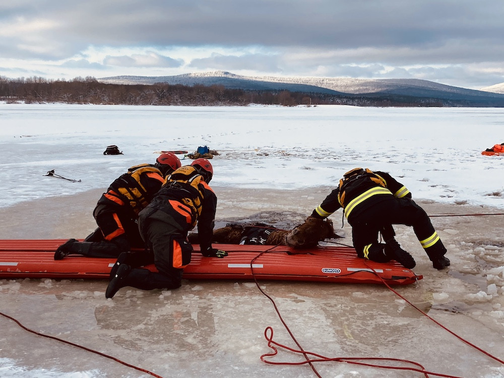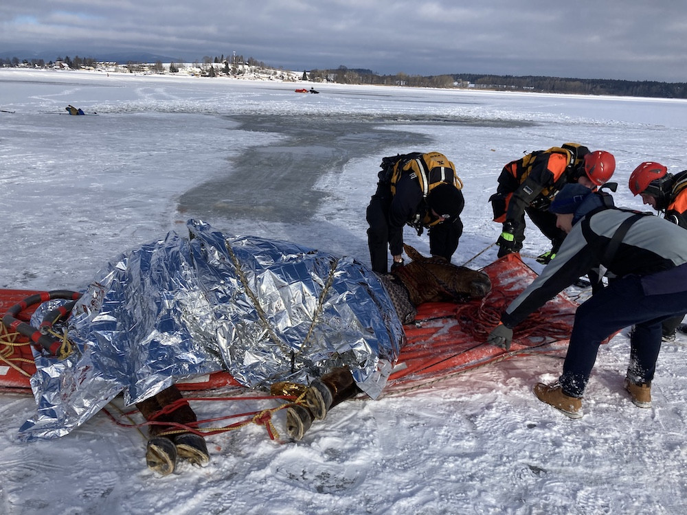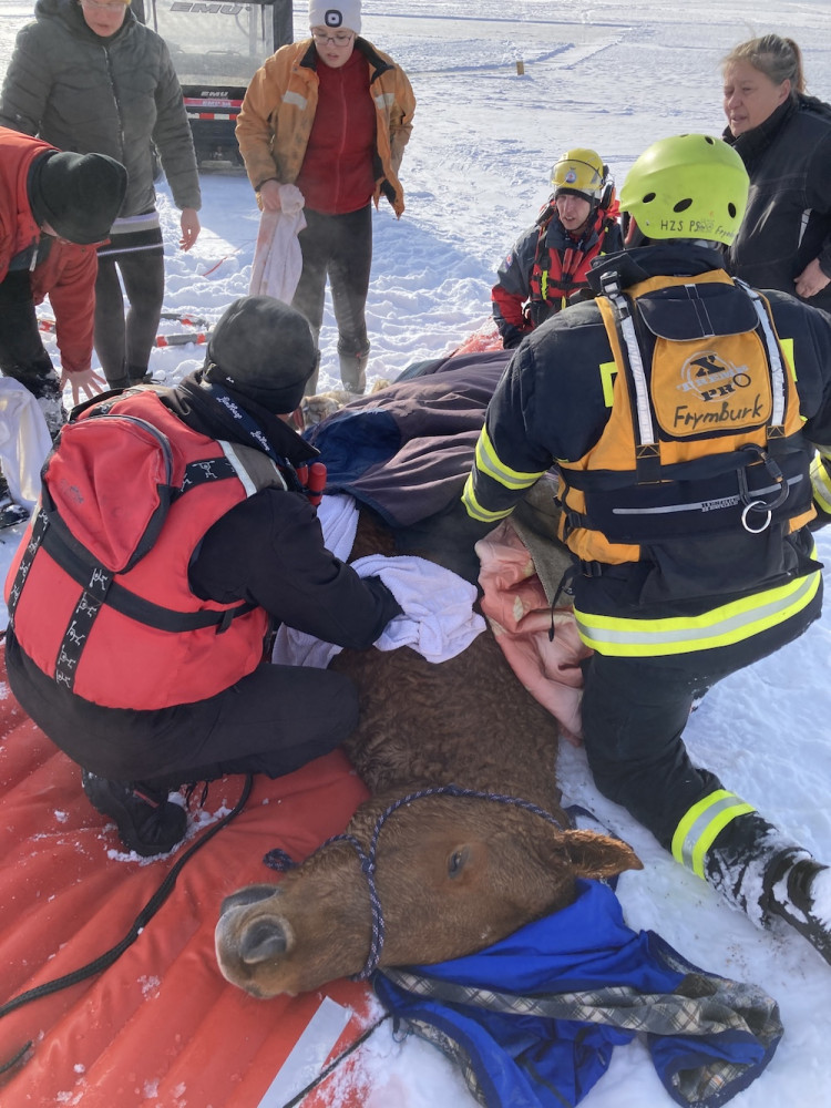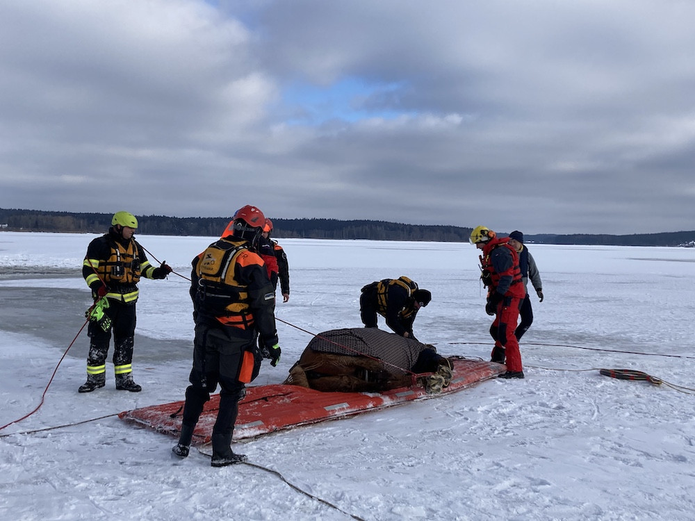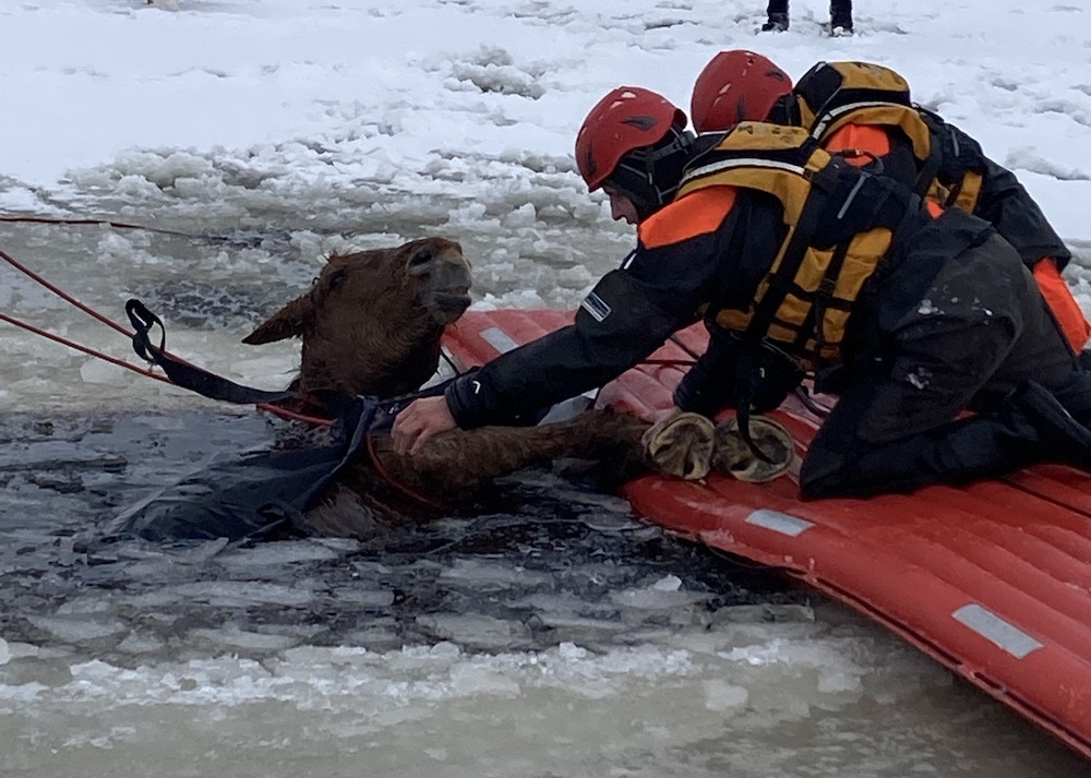 Pod kobylou se na Lipně prolomil led. Vytáhnout ji museli záchranáři pomocí lan