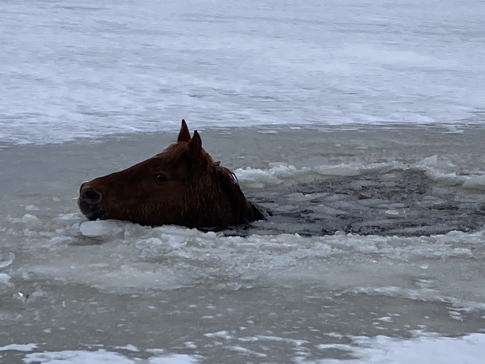 VIDEO: Pod kobylou se na Lipně prolomil led. Vytáhnout ji museli záchranáři pomocí lan