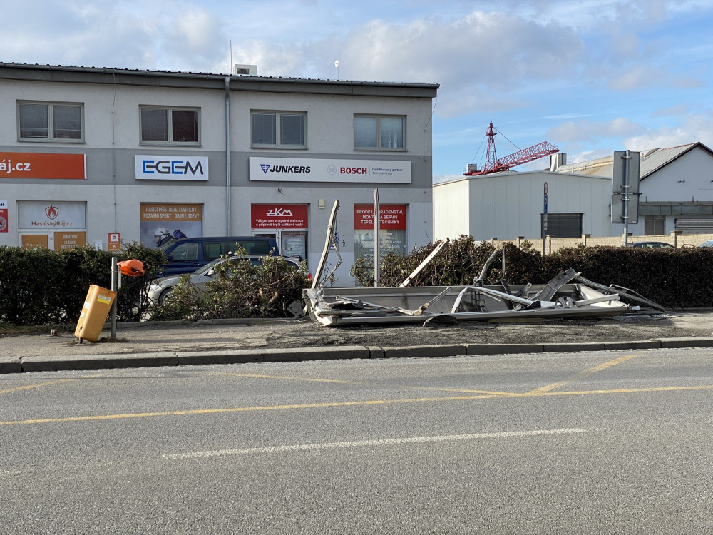 Řidič renaultu zdemoloval autobusovou zastávku. Při nehodě utrpěl jen lehká zranění