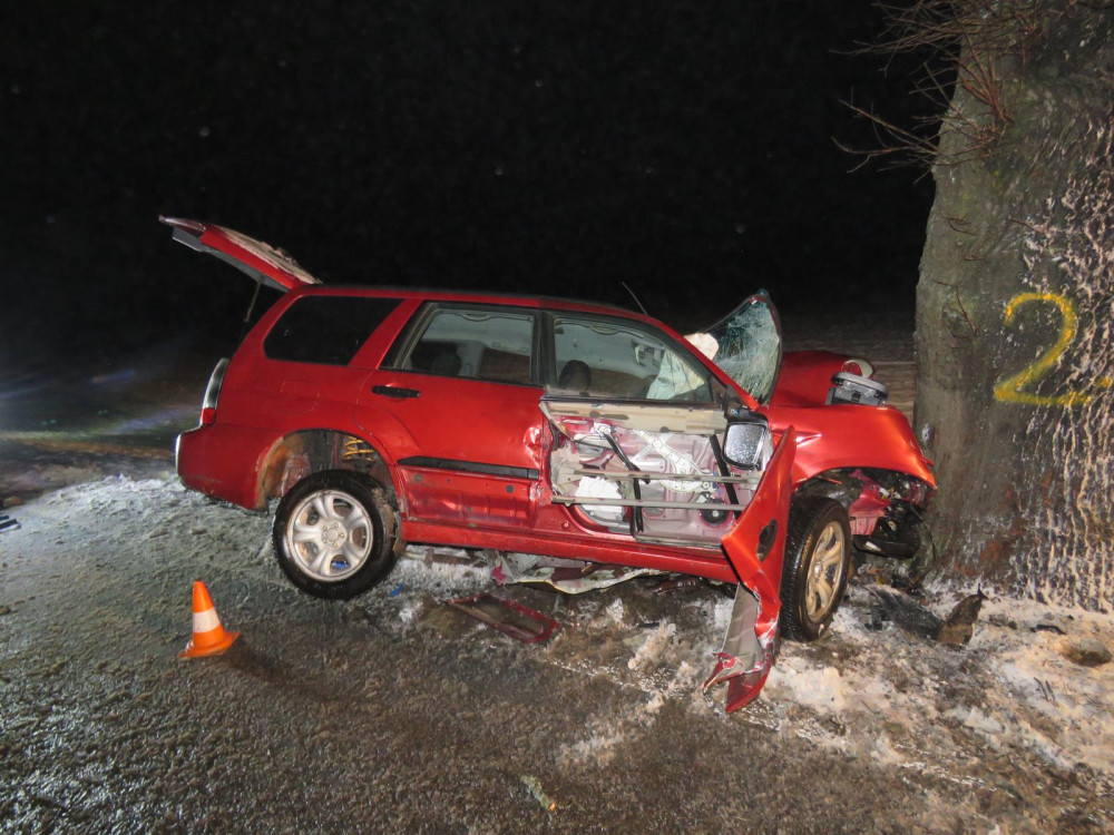 Tragická nehoda na Krumlovsku. Řidič Subaru nepřežil náraz do stromu