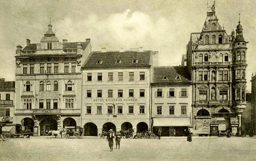 Východní strana náměstí, malý dům před rokem 1908.