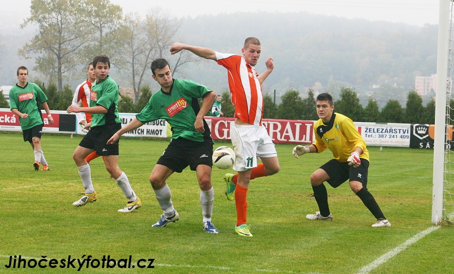 Největší šanci Rokycan měl na kopačce Filip Procházka, který - ač byl atakován Trněným - nebezpečně vystřelil