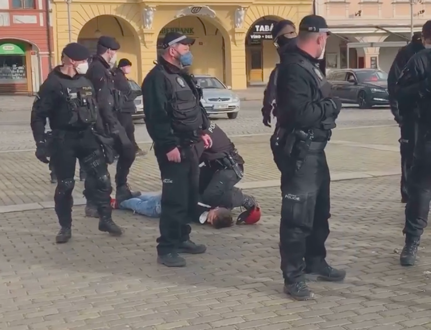 Mladík bez roušky skončil v poutech poté, co neuposlechl policisty. Incident zachytila kolemjdoucí