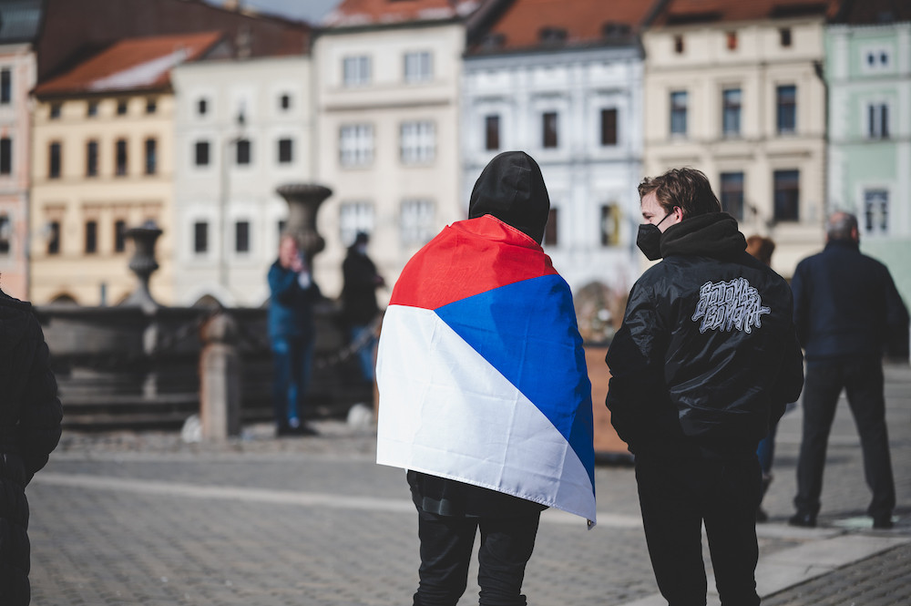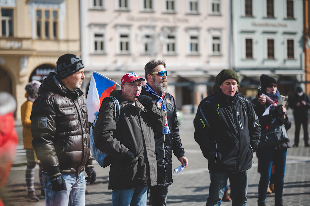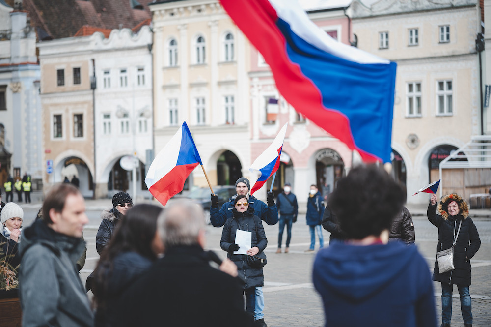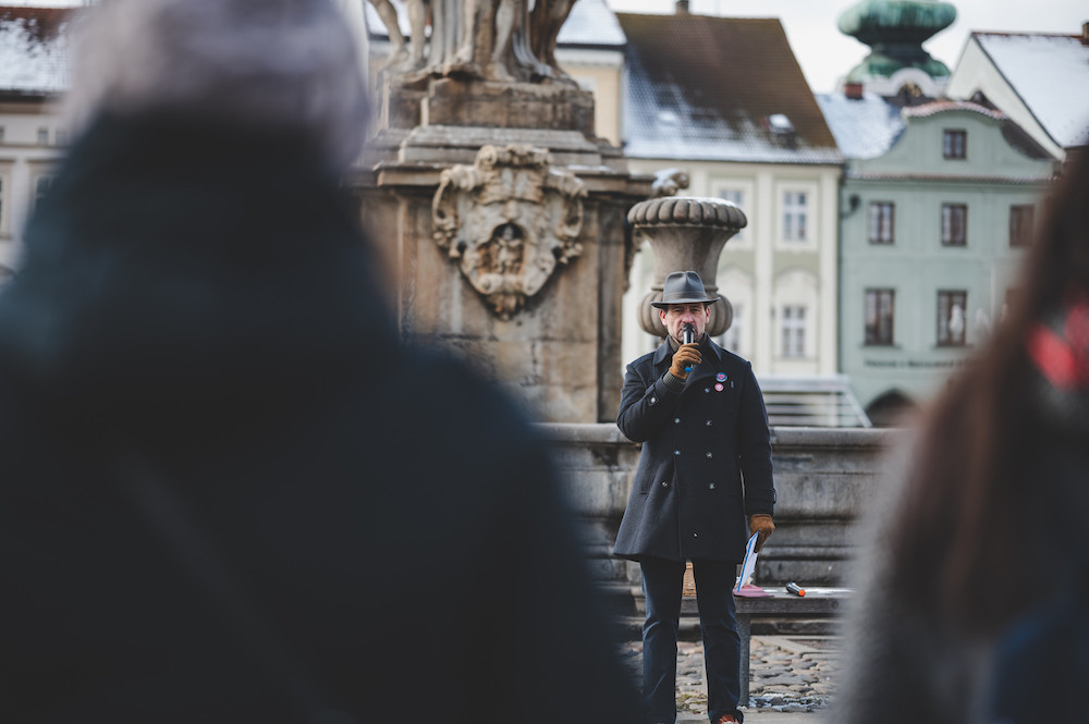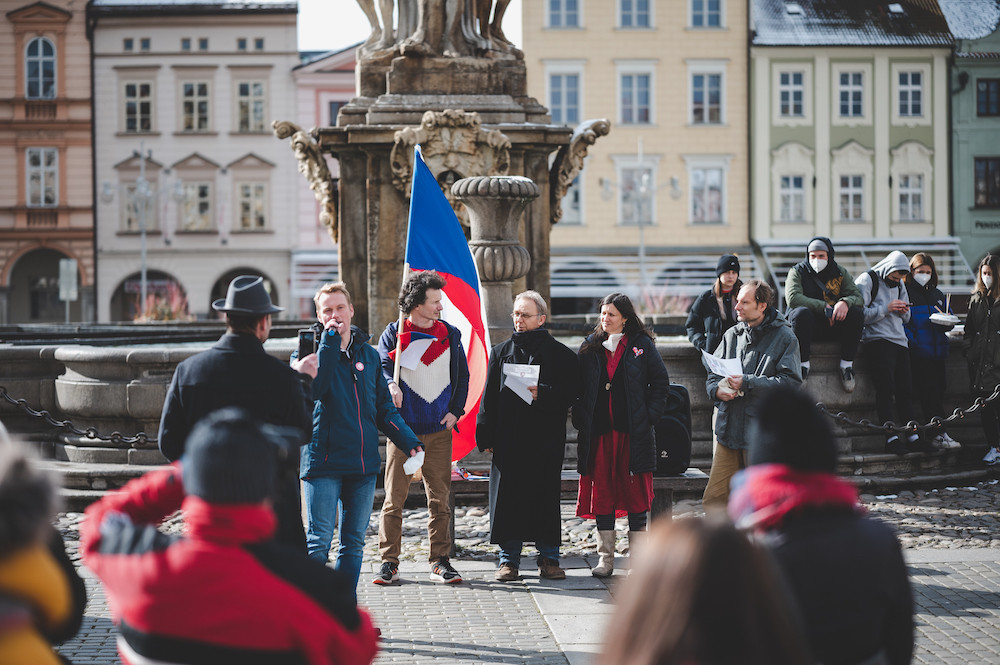 Na demonstraci v Budějcích přišlo zhruba šest desítek lidí