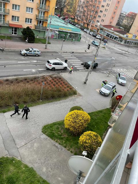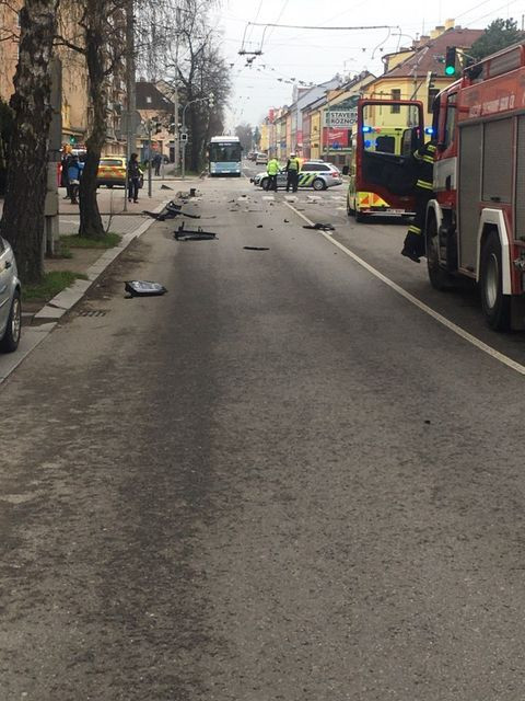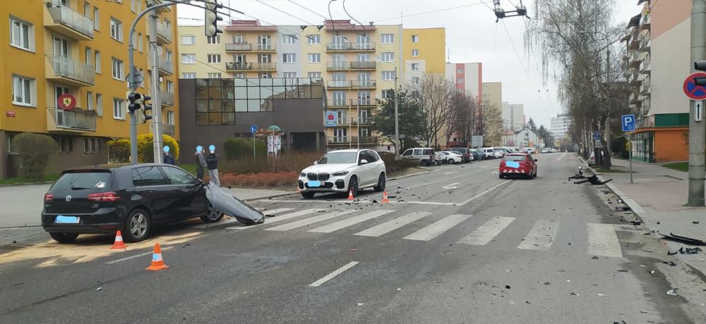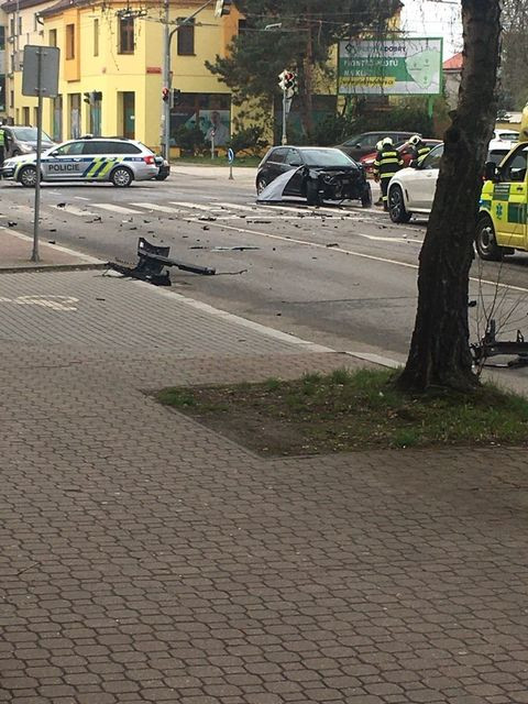 Honička ulicemi Budějc. Ujíždějící řidič naboural na křižovatce do auta, zastavil ho až strom