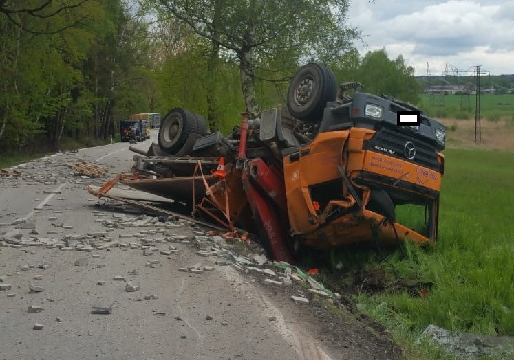 Náklaďák sjel do stoky a vysypal převážený náklad. Silnice mezi Hradcem a Dačicemi je uzavřená