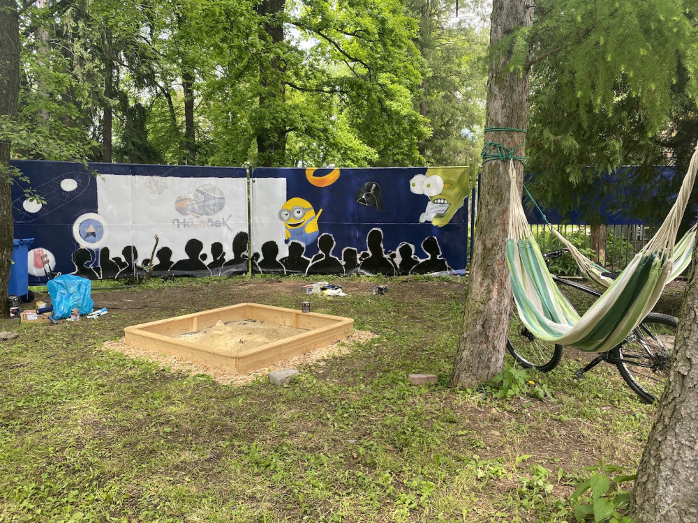 Nový koutek nabídne kromě možnosti posezení také pískoviště pro děti.