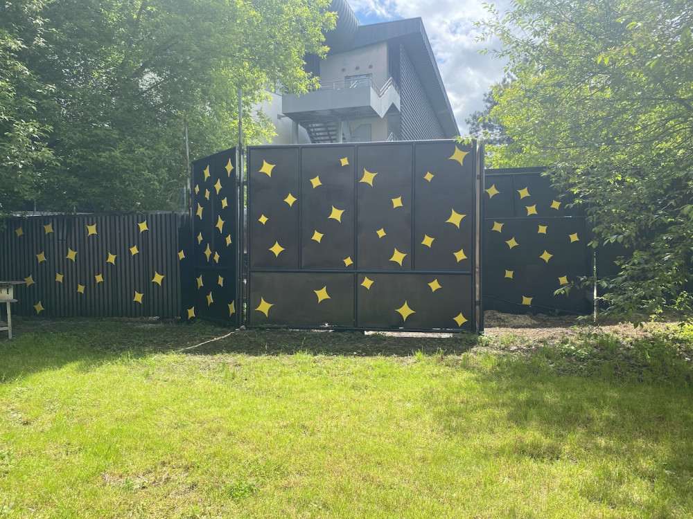 Plechové oplocení se proměnilo na hvězdné nebe.