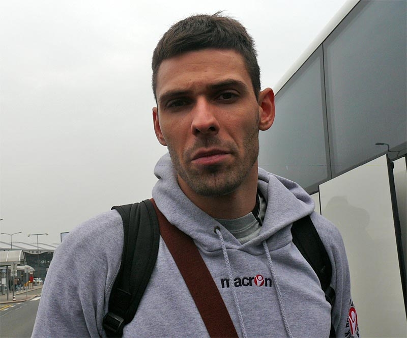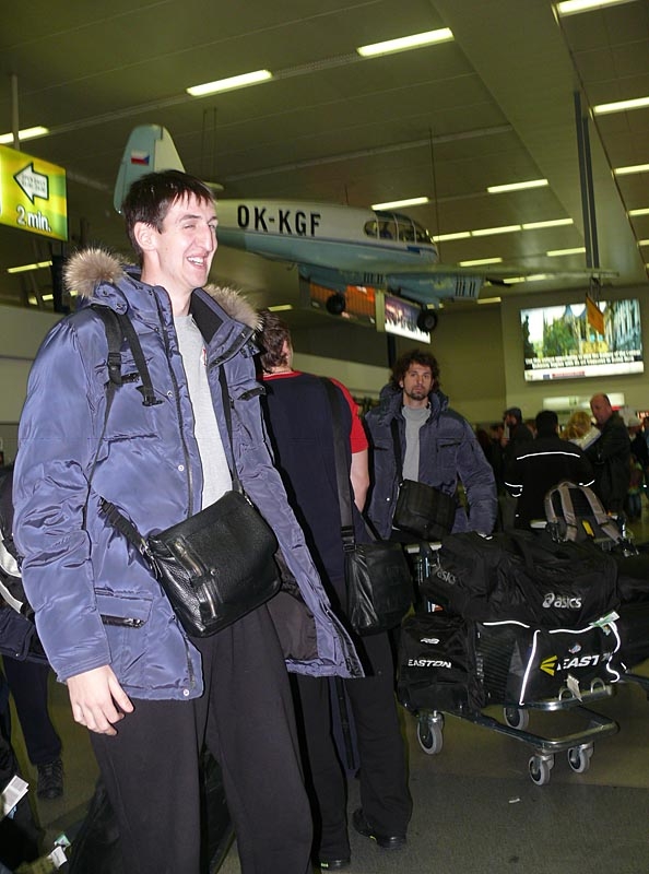 Na snímku 213 centimetrů vysoký blokař Artěm Volvič