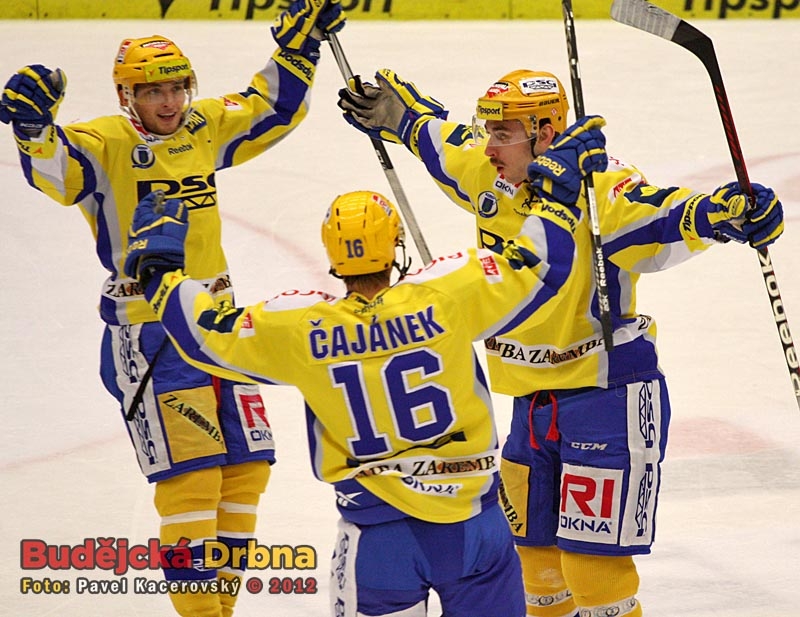 Zlínský bek Pavel Matějíček (vpravo) dal svůj první extraligový gól v úterý proti Třinci. Na ledě Motoru se trefil hned dvakrát