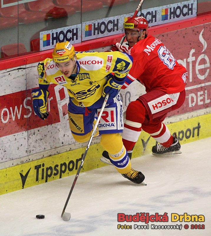 Zatímco zlínský zadák Tomáš Linhart masíroval budějckého forvarda Tomáše Mertla, Pavel Kubiš se ujal puku