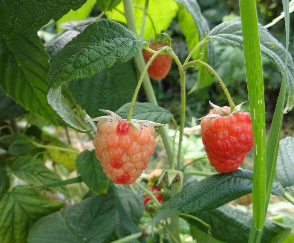 Nerovnoměrné dozrávání plodů maliníku.