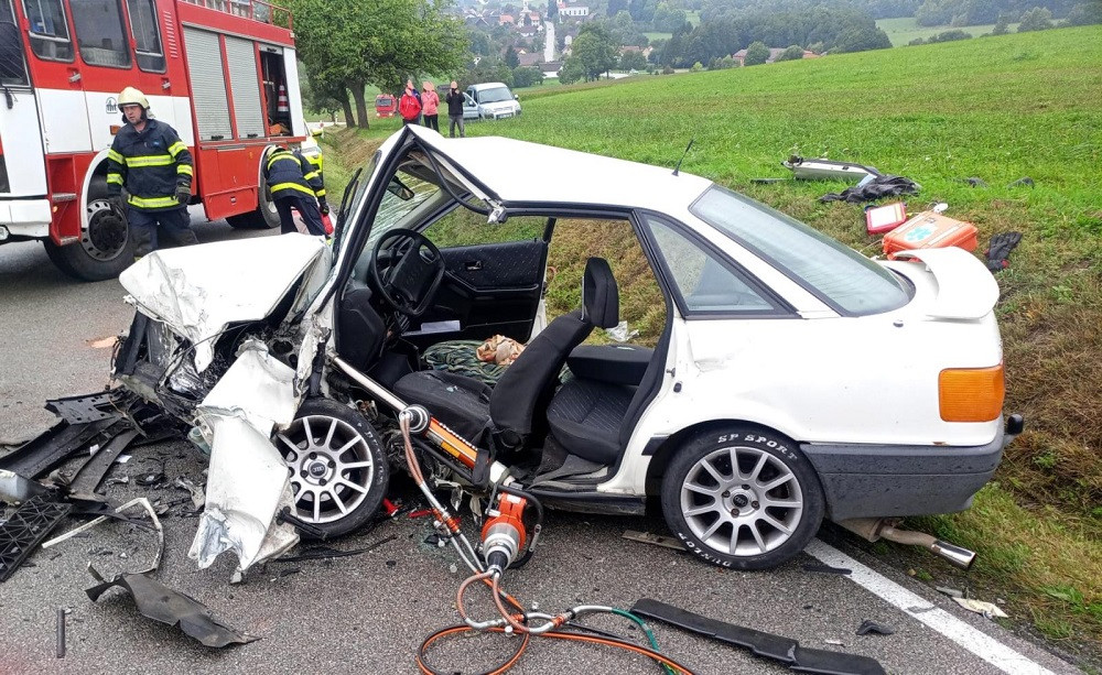 Po střetu auta s kamionem museli hasiči jednoho člověka vyprošťovat