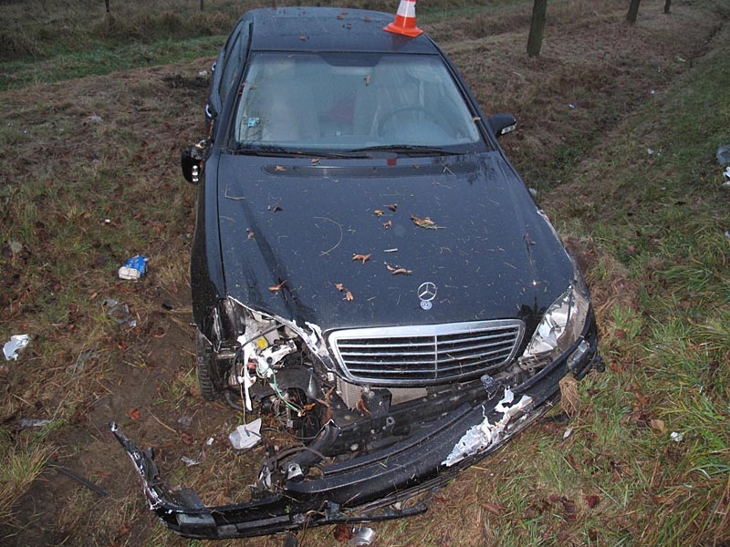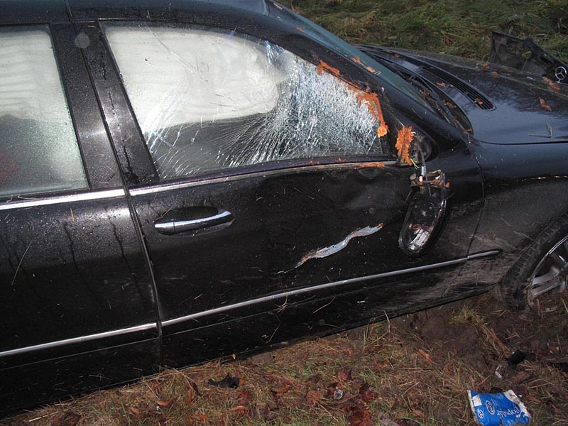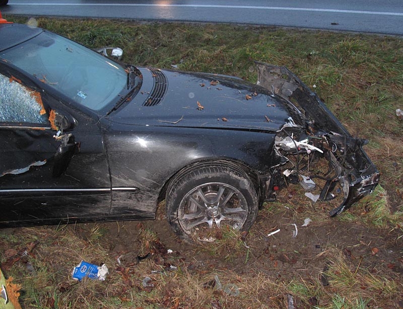 Náklaďák vjel do cesty mercedesu, ten vylétl mimo silnici