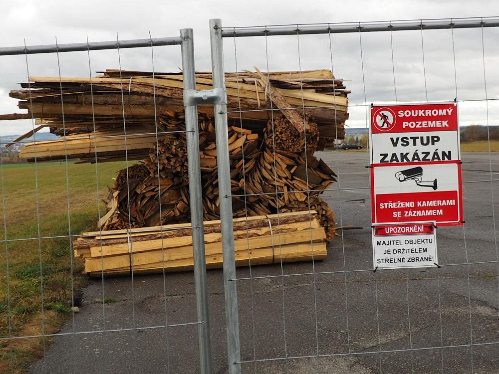 Lidé se snaží dostat na letiště u Tábora. Majitel je držitelem zbraně, varuje cedule