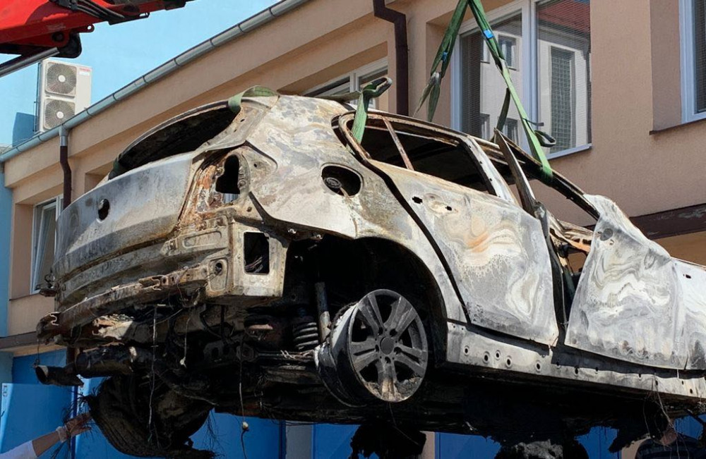 Auto, které pachatel zapálil v lese nedaleko v Protivína. Foto: Policie ČR