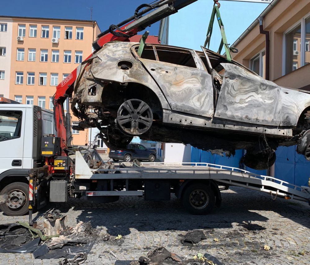 Auto, které pachatel zapálil v lese nedaleko v Protivína. Foto: Policie ČR
