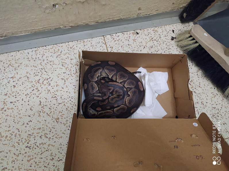 V krabici od bot našla žena krajtu královskou. Hada někdo nechal na autobusové zastávce