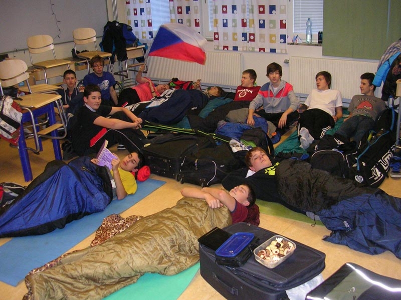 Mladí Štíři hájili budějcké barvy ve Švédsku. Na snímku jsou zachyceni těsně před zaslouženým odpočinkem