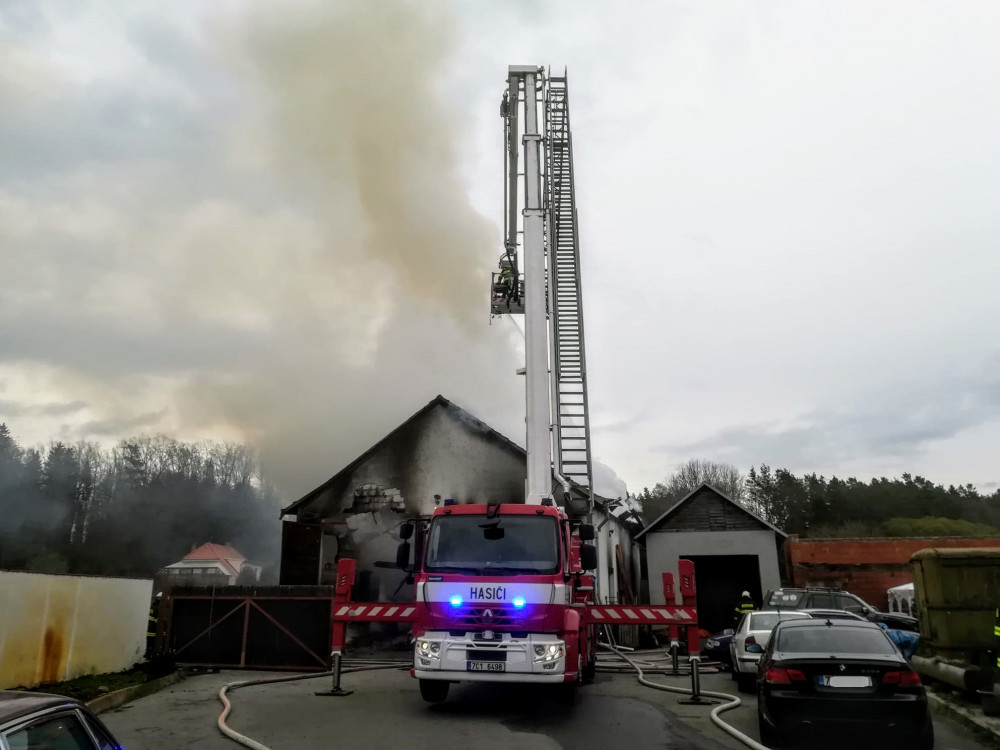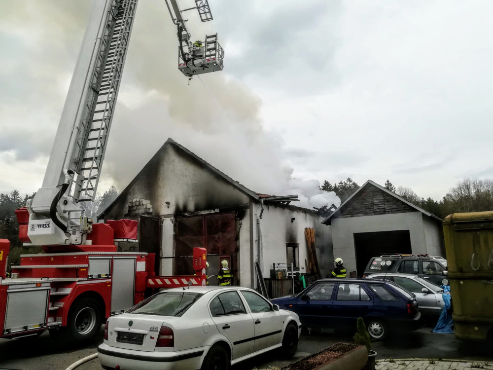 Hasiči zasahovali u požáru autodílny. Střecha se propadla