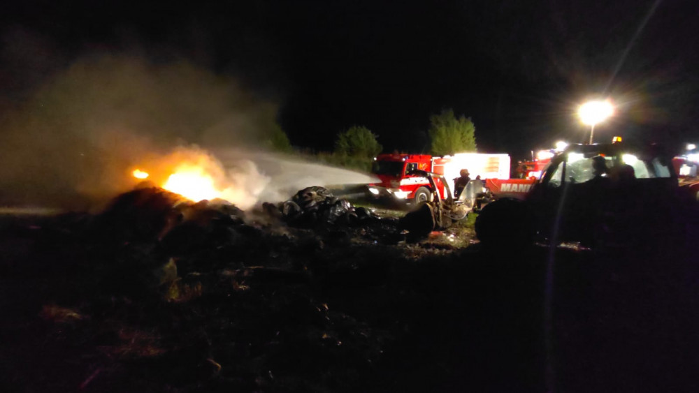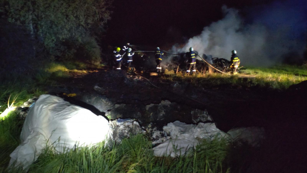 Noční požár skládky v Brloze.