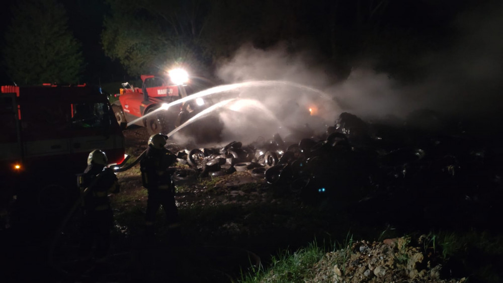 VIDEO: Hasiči bojovali s požárem pneumatik. Oheň se rozšířil i na pytle s plastovým odpadem