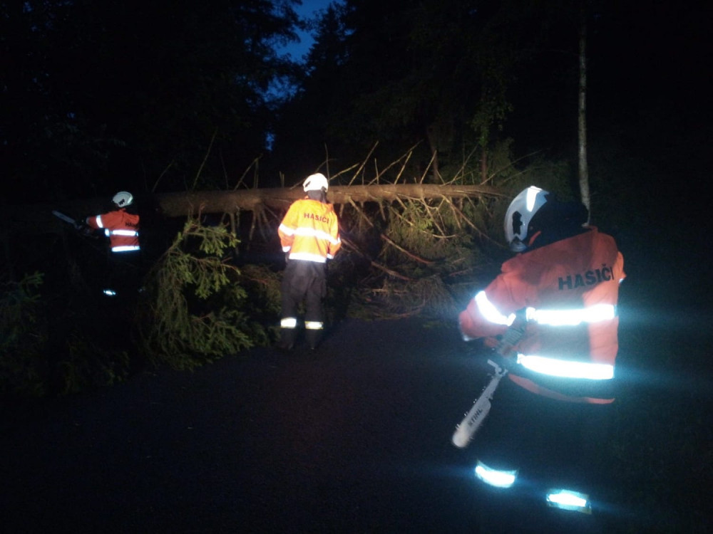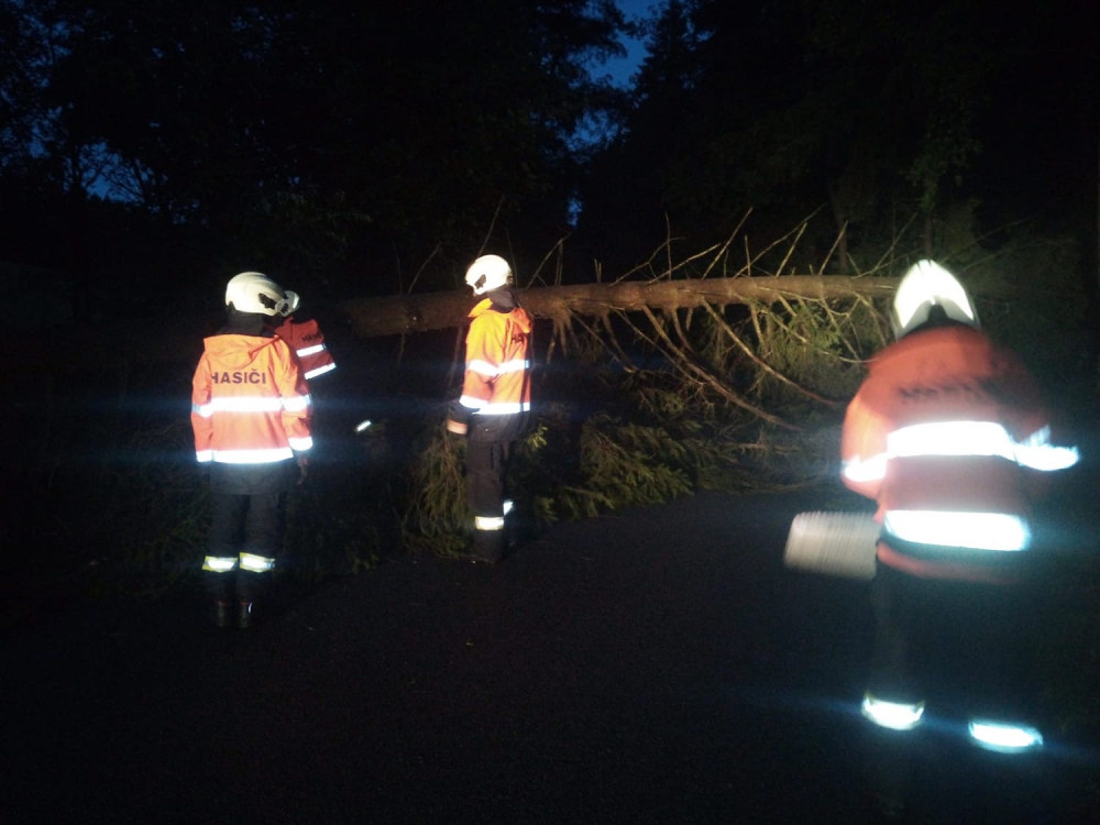 Hasiči odklízeli popadané stromy a čerpali vodu. Bouřky hrozí i dnes
