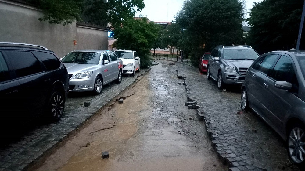 V Týně nad Vltavou voda vyrvala povrch silnic a chodníků. Foto: Vít Lhotka