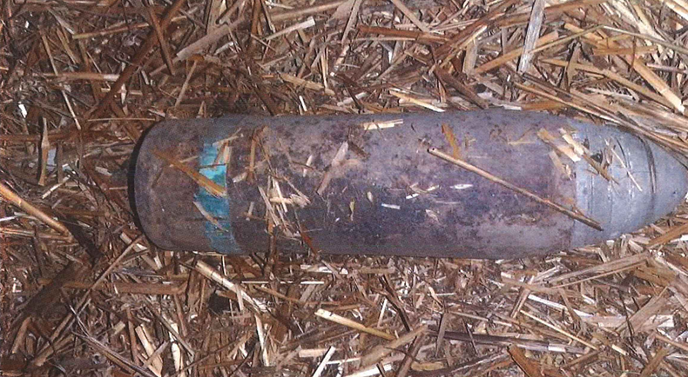 V obci Polště našli vypálený šrapnelový granát model 1915 do tažného kanonu o průměru 7,5 cm, informovala policie.