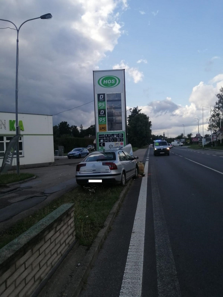 Řidič přejel do protisměru a narazil do ukazatele cen pohonných hmot. Zraněním podlehl
