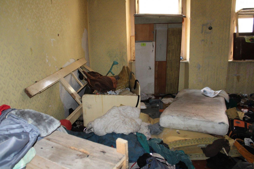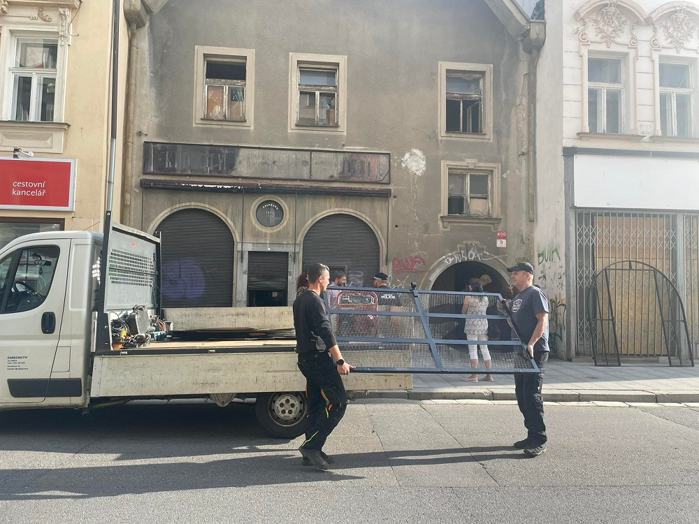 V centru Českých Budějovic začalo vyklízení domu, který obývají lidé bez domova