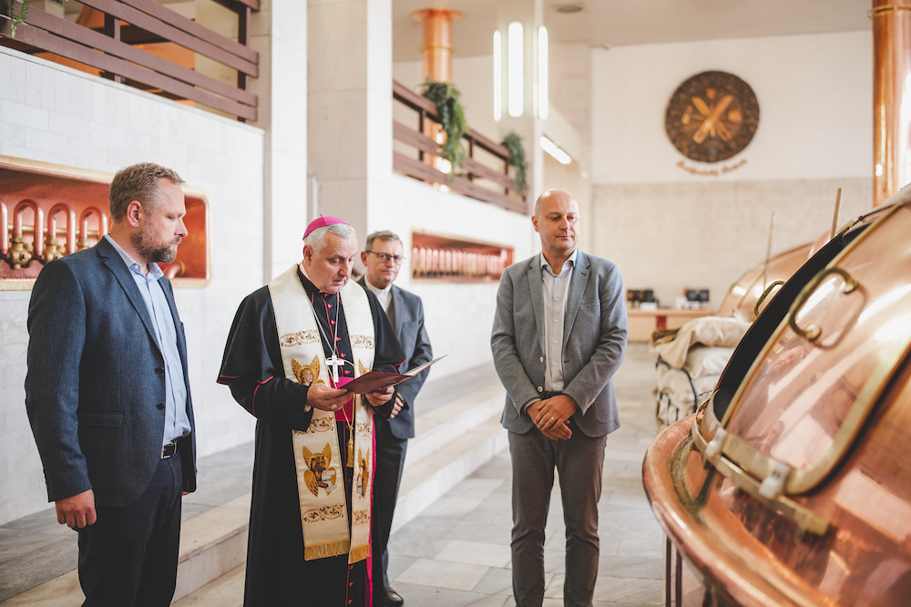 Biskup tradičně požehnal várce ležáku z Budvaru. Lahev poputuje i papežovi do Vatikánu