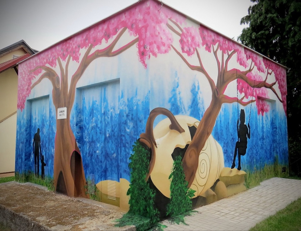 Trafostanice v Hrdějovicích připomíná bývalou třešňovou alej.