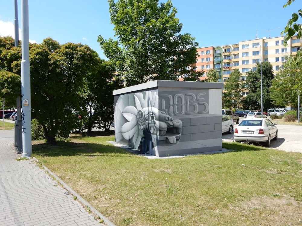 Mexické motivy na trafostanici v ulici N. Frýda v Českých Budějovicích.